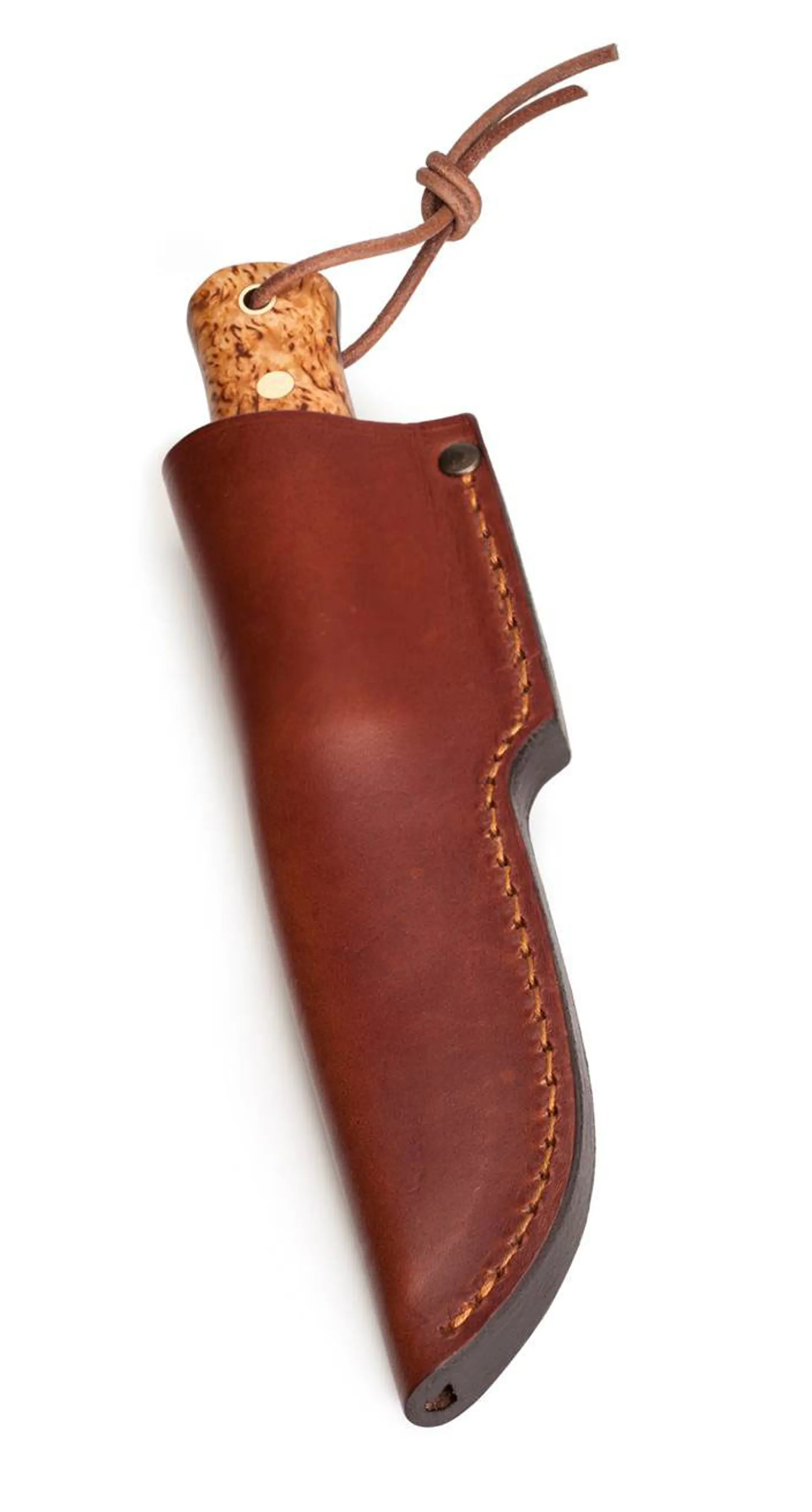 A sturdy leather sheath that fits the Casström Lars Fält Knife. 3mm vegetable-tanned cognac brown leather. Knife not included.