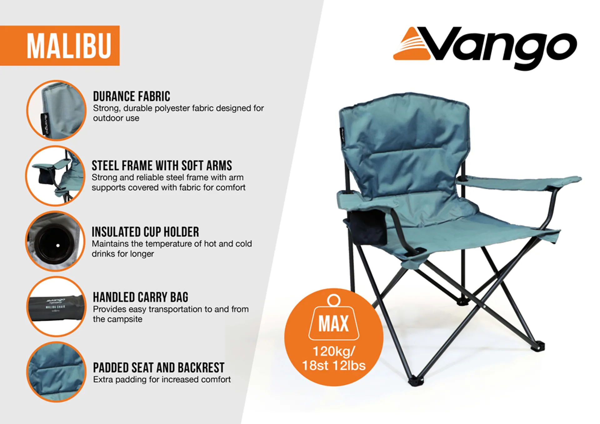 Question(s) answered about Vango Malibu Folding Camping Chair - Mineral Green